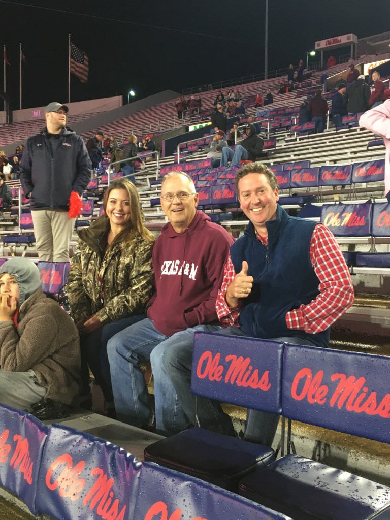 Then the 2012 season came along. Our season started with a new coach, Kevin Sumlin, and a home match-up against Florida where redshirt, Johnny Manziel made his college debut – followed up with a game against SMU in Dallas and two more home games. However, it was the 9th game in a row that the Moellers attended that really got the trend going. Shortly after Laura cheered at a Columbus High School football game they drove to Ole Miss where the Aggies would win 30-27.